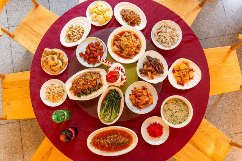 11顿饭顿顿不重样:白灼鲜草虾、荷叶糯米鸡、清蒸青石斑、茨菇烧仔鹅、香辣牛蹄筋、菌菇爆牛柳、烤羊排、同济松糕……